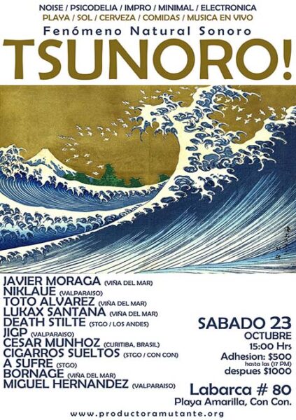 Productora MutanteComunidad Gráfica ChileConcónBornageCesar MunhozCigarros SueltosDeath StilteJavier Moraga JIGPLukax SantanaMiguel HernándezNiklaueToto ÁlvarezReconocimiento-NoComercial-SinObraDerivada ( CC BY-NC-ND)Documento PDFEspañol AficheArte SonoroElectrónica ImproMinimalMúsica Experimental NoisePsicodeliaDonación Afiche